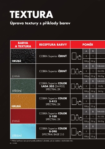 A TEXTURA RECEPTURA BARVY POMĚR APLIKACE