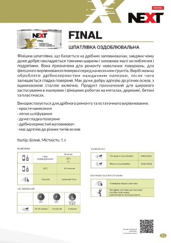 Фінішна шпатлівка, що базується на дрібних заповнювачах, завдяки чому