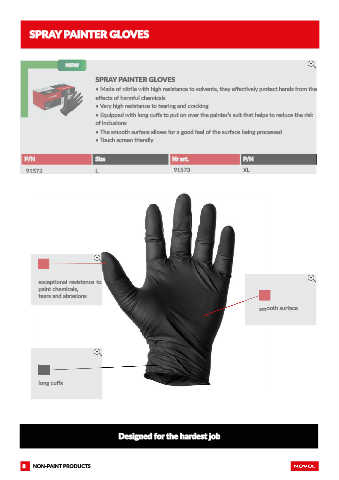 • Made of nitrile with high resistance to solvents, they effectively protect hands from the