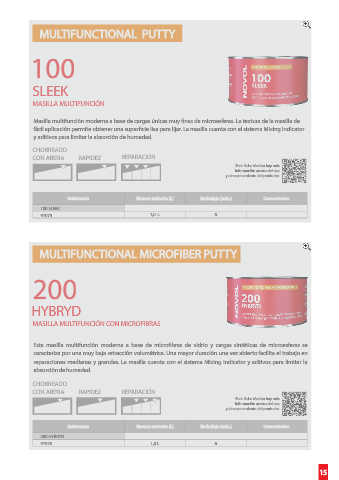 fácil aplicación permite obtener una super cie lisa para lijar. La masilla cuenta con el sistema Mixing Indicator